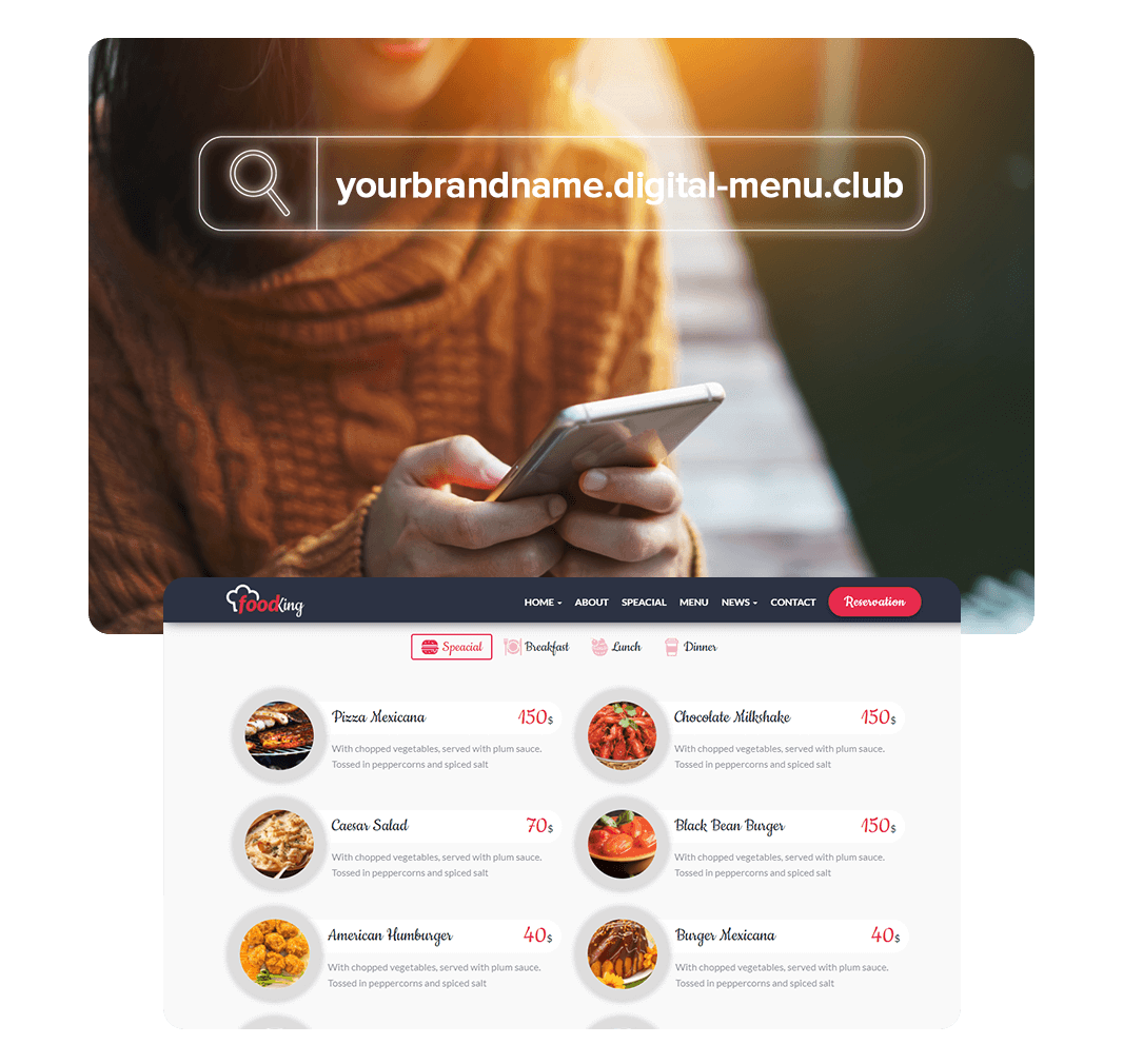 We provide a custom web link/URL for your menu in your brand name. you can use this URL in your marketing materials, emails or web.
